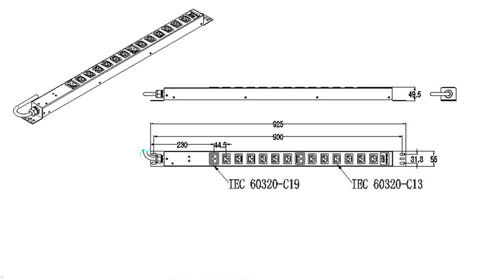 outlets-IEC 60320-C13,two outlets-IEC 60320-C19 |