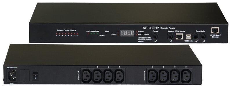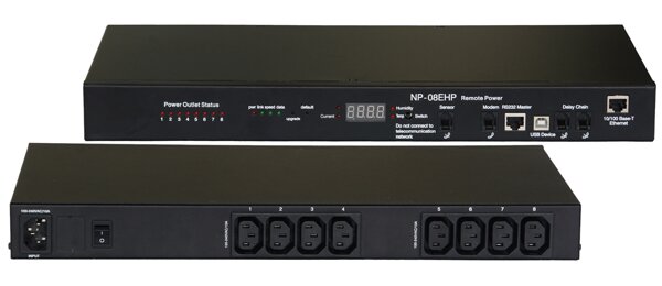 NP-08EHP PDU provides intelligent remote power management operations, allowed by diversified ways to access and control including network protocols and local etc control mode, multistage system administrative privileges, network security account can be simple, rapid and reliable implementation of the power control,parameter monitoring and status of the equipment real-time detection.